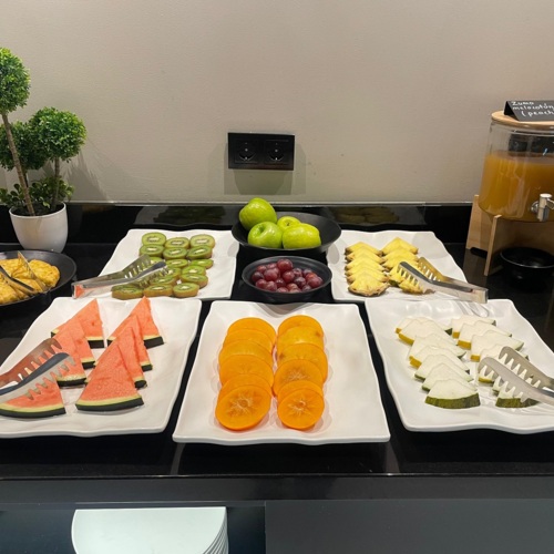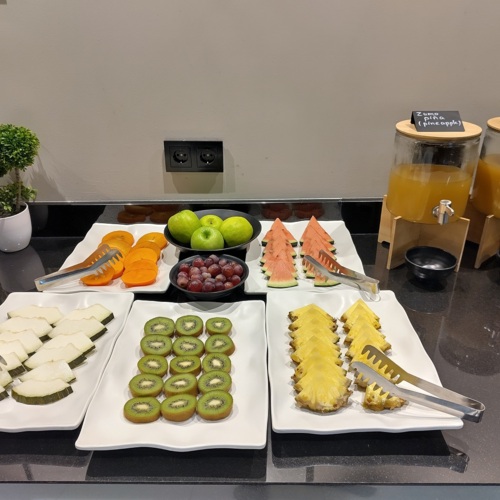 Comienza tu día disfrutando de nuestro desayuno buffet, diseñado para ofrecerte una variedad de opciones frescas y deliciosas. Encontrarás una selección de productos que combinan calidad y sabor, perfectos para todos los gustos. Disfruta de un ambiente acogedor mientras eliges entre frutas frescas, panes, cereales y más, todo preparado pensando en brindarte una experiencia agradable y cómoda.